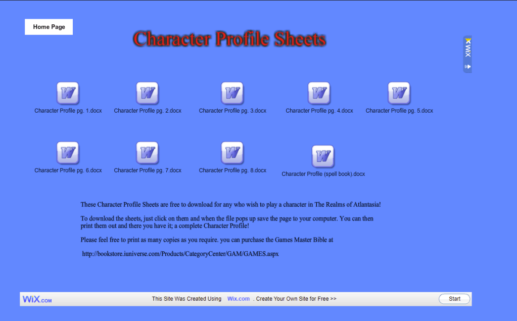 These links are listed within the Game Master’s Bible to get the character sheets. The first one was dead when I accessed it initially in 2020. I was unable to recover anything from it.