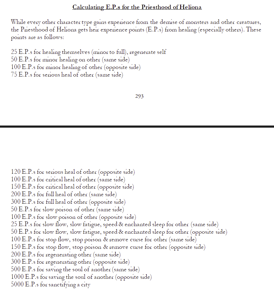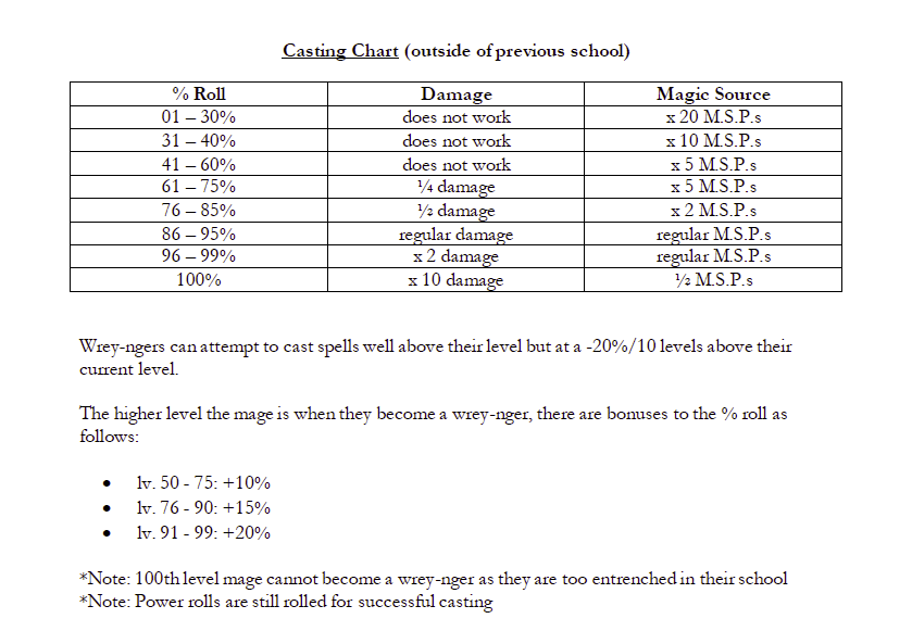 This description is not wrong, the magic system is very involved but in a really confusing and meandering way. Double (and triple!) classing is a key element of Atlantasia, which gets bogged down by that mention of rules that “MUST be followed”. Imagine the most obnoxious player at your table going “But its what my character would do!” and being unable to stop them because its literally written in the rules that they must do it. The same is true of the Schools of Magic and Temples of worship, believe me we’ll get there.