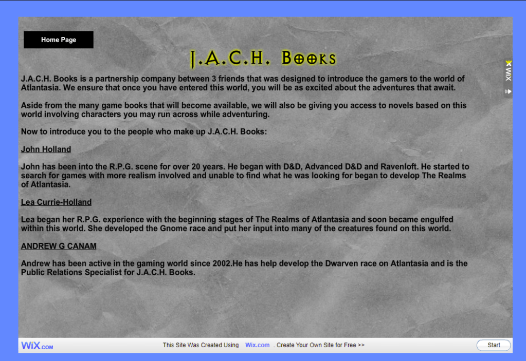 Their company, J.A.C.H. Books planned to create multiple Atlantasia books, including novels. As previously stated, none of these ever came to fruition beyond the Game Master’s Bible.