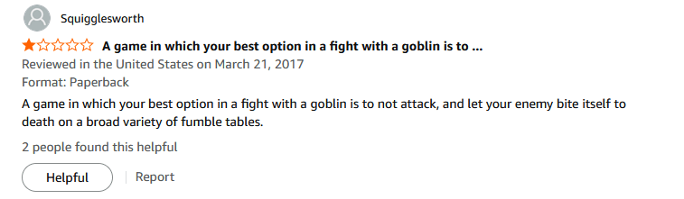 The most coverage the game ever received was /tg/ threads and a few reddit posts making fun of the game and its contents. Comparisons were made to the World of Synnibar, another much maligned tabletop RPG known for its nonsensical worldbuilding and bizarre rules and combat system. Here is a link to a very 2001 review of the game on RPG.net to give an idea of the content. I can’t disagree this game isn’t similar for reasons that will soon become apparent.
